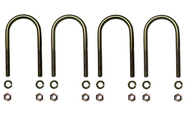 4 Blattfederbügel plus Muttern und Federringen